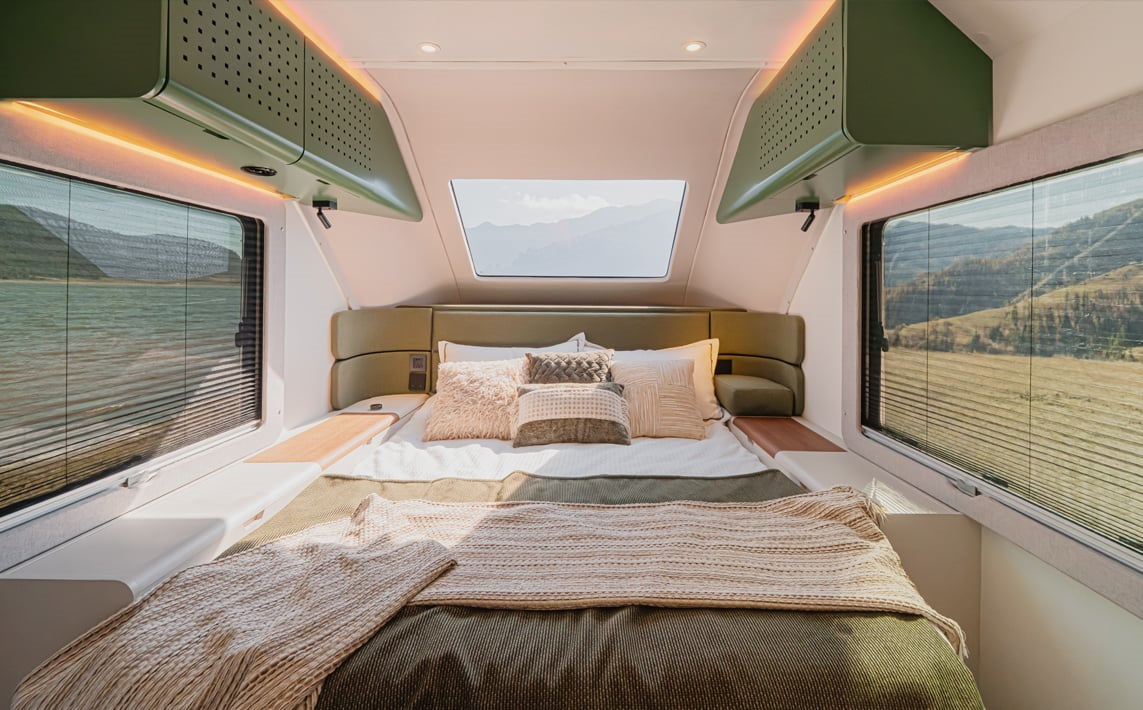 The Evotrex-PG5 is the world’s first power-generating RV trailer. It’s designed to support extended off-grid travel with a fully integrated power ecosystem, advanced towing assist, and a premium residential interior.