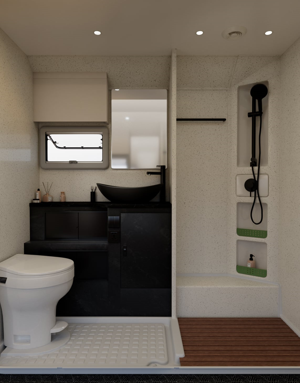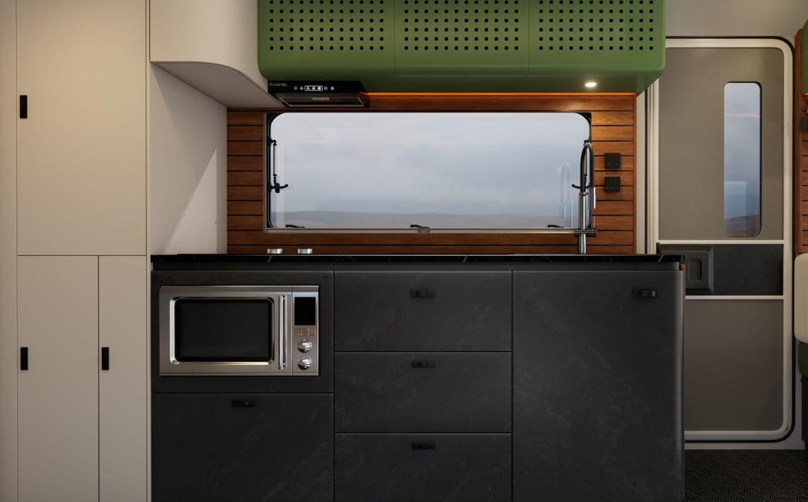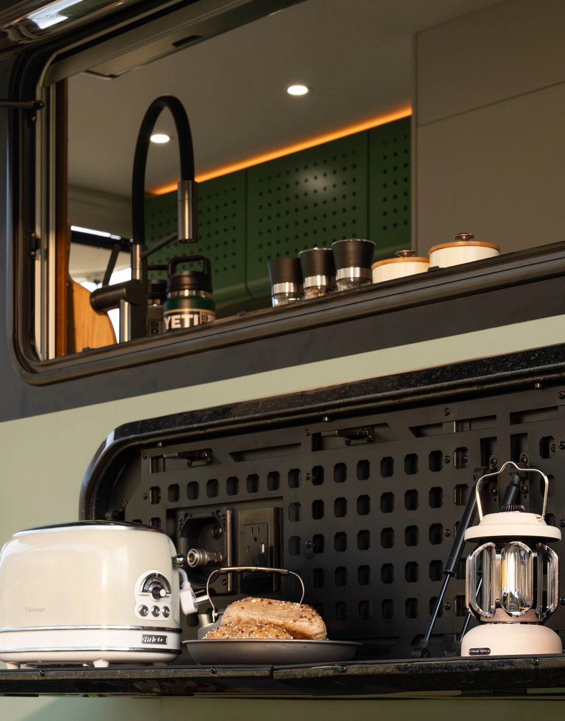 Dedicated space for your coffee maker and morning essentials. Because the best part of waking up off-grid is still that first cup, made exactly how you like it.